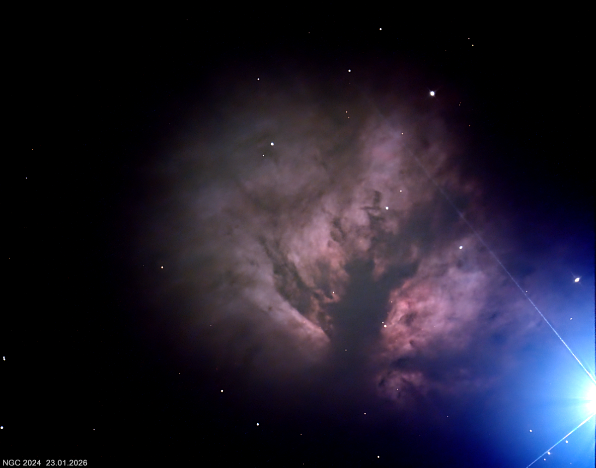 Flammen-Nebel NGC 2024 Aufnahme 342mm Refraktor... Kamera Omegon veTEC 571c 60x30 sek