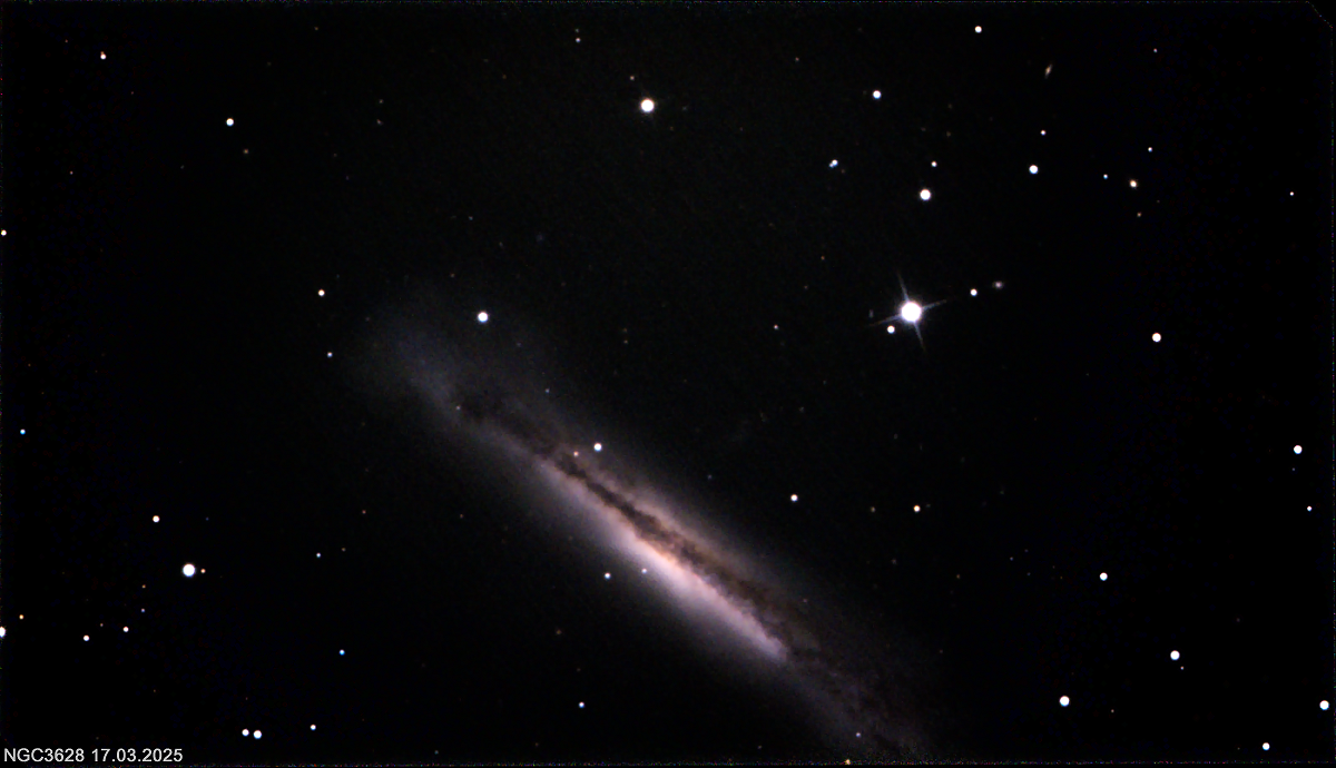NGC3628 Galaxie aufgenommen am 17.03.2025 mit RC-Teleskop 1600mm, Omegon veTEC 585C Kamera 90x60sek