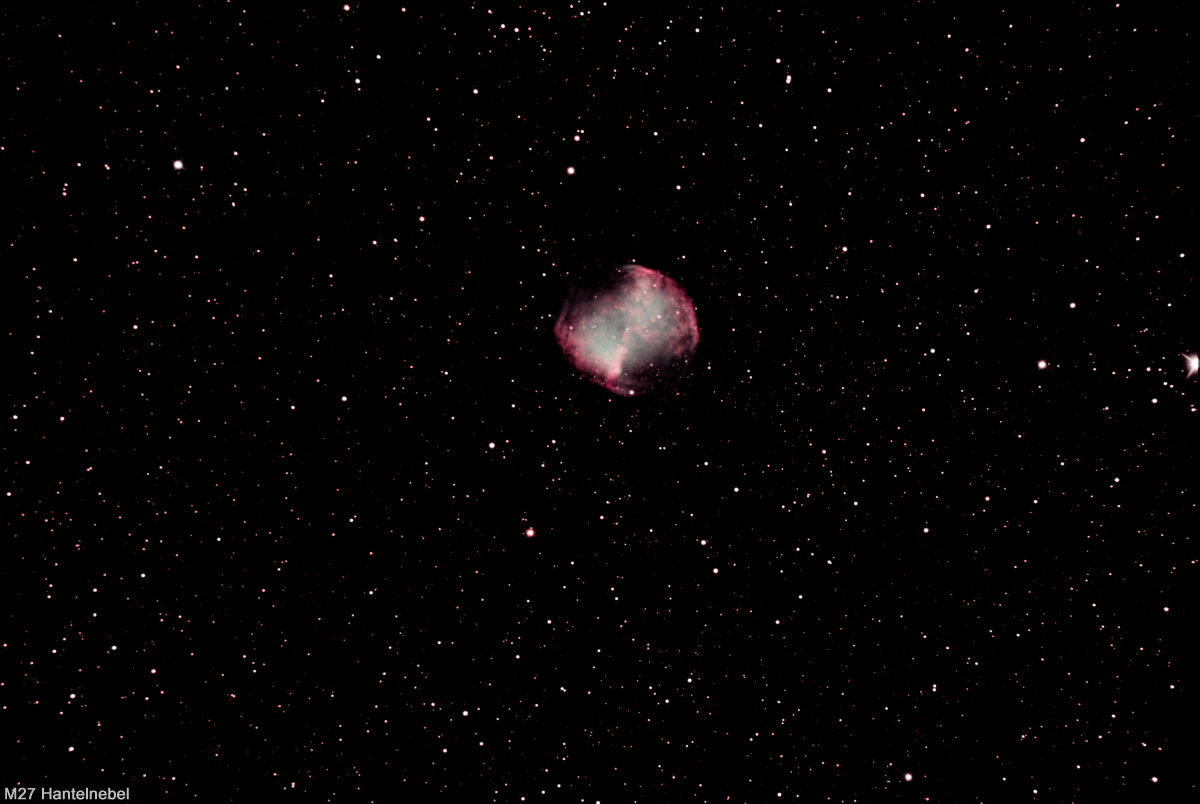 M27 Hantelnebel aufgenommen am 12.08.2024 mit RC-Teleskop 1600mm, Omegon veTEC 571C Kamera 20x150sek