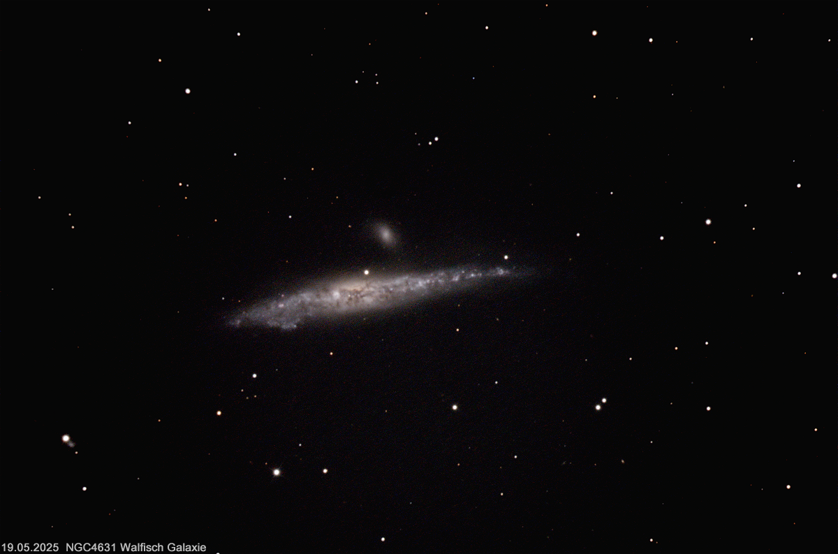 NGC4631 Galaxie aufgenommen am 19.05.2025 mit RC-Teleskop 1600mm, Omegon veTEC 571C Kamera 45x75 Sek.