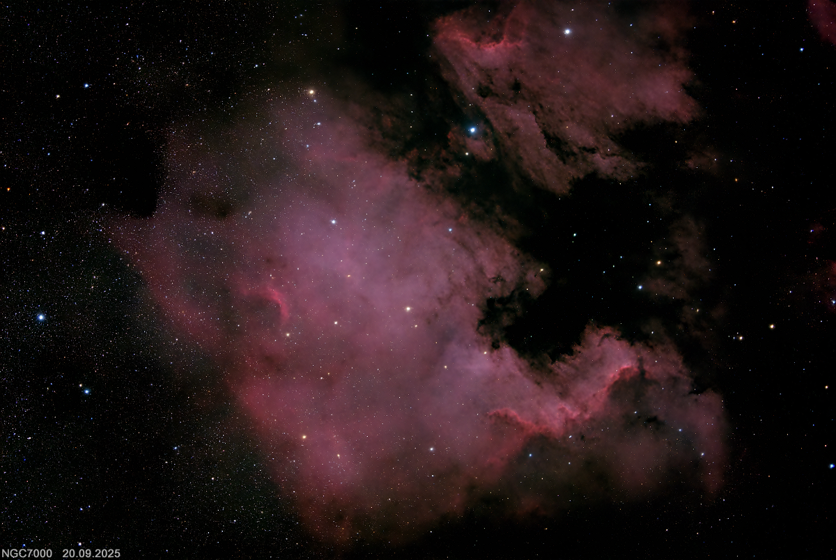 NGC7000 Nordamerikatnebel aufgenommen am 20.09.2025 mit Refraktor 342mm, Omegon veTEC 571C Kamera 80x60sek